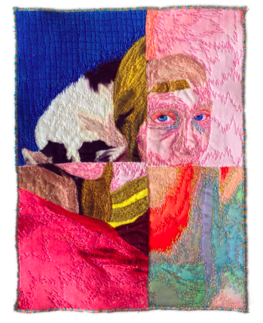 Born in Switzerland, Xenia Lucie Laffely lives and works between Lausanne and Montreal. Laffely has a background in fashion design (HEAD-Geneve), french literature, art history (UNIL-Lausanne) and feminist studies (UQAM- Montreal). Xenia Laffely’s practice combines the traditional language of textile work with the contemporary aesthetic of digital photoshopped painting, creating hybrid pieces that question hierarchies between art, design and crafts. She creates a lively sentimental reappropriation of issues related to domestic space, intimacy, queer love and self-fiction.